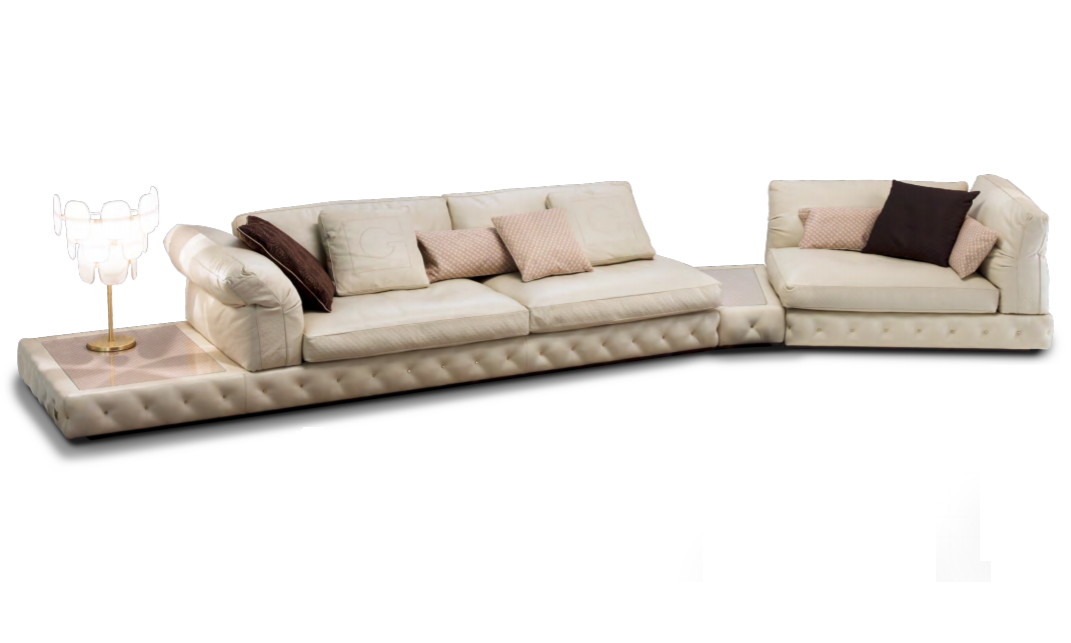Диван Formitalia Duccio в классическом стиле из Италии. Размеры: 535 x 186 x h74 см. Материалы: кожаная обивка в бежевой отделке, капиттоне с латунными пуговицами золотого цвета, шпонированное основание в отделке венге.