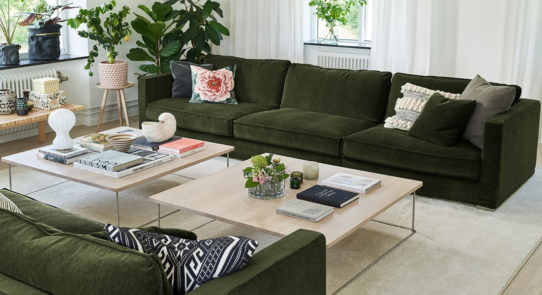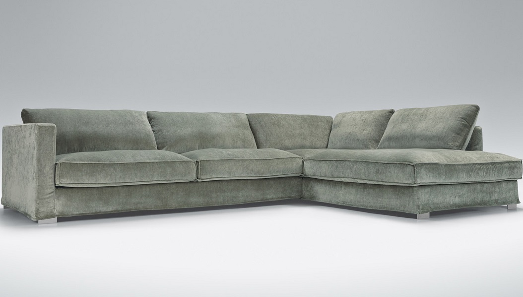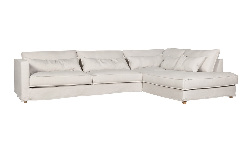 Диван Sits Cloud. Линейка включает много конфигураций угловых и прямых диванов и пуфы, а также разные варианты обивки, отделки и наполнения. Возможны варианты со съёмным чехлом.