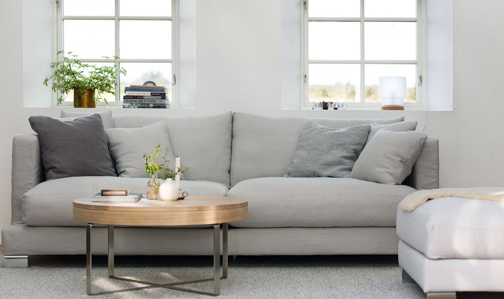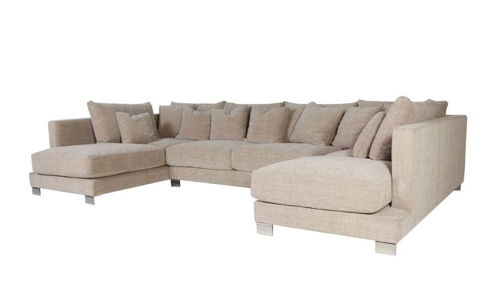 Диван Sits Colorado с пуховым наполнением подушек спинки и сиденья. Линейка включает много конфигураций угловых и прямых диванов, пуфы и кресла, а также разные варианты обивки и отделки.