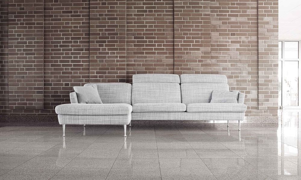 Диван Sits Timjan. Линейка включает много конфигураций угловых и прямых диванов, пуфы и кресла, а также разные варианты обивки и отделки.