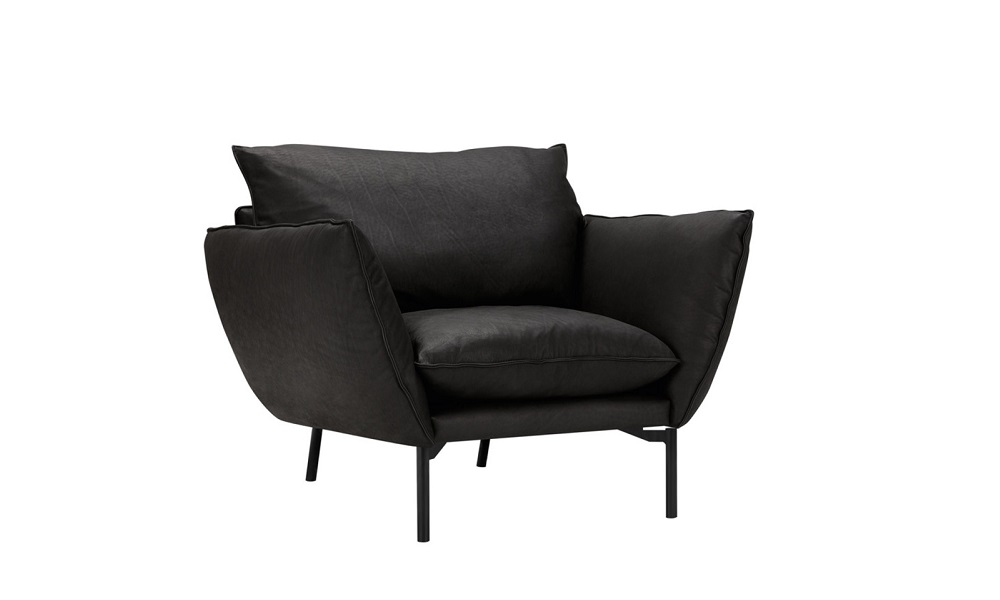 Кресло Sits Hugo. Линейка включает много конфигураций угловых и прямых диванов, пуфы и кресла, а также разные варианты обивки, отделки и наполнения. Размеры: 102 x 91 x 84/47H см.