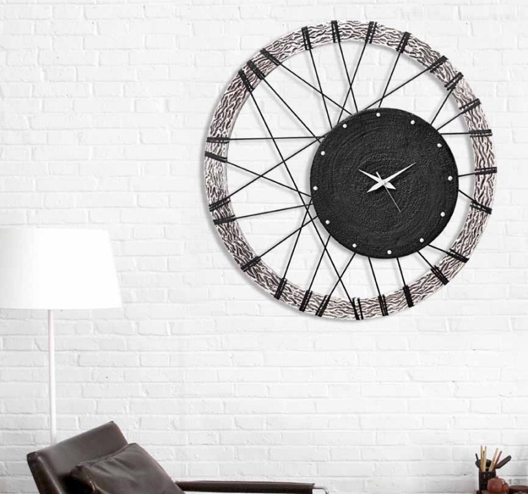Рельефные часы в оправе из серебряной фольги. Глянцевая отделка.