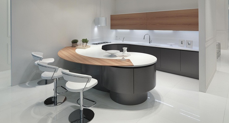 Кухня Aster Cucine DOMINA в современном стиле. Фигурная столешница со шкафчиками темного цвета. Вы можете купить мебель в нашем интернет-магазине DecoShop по лучшей цене.
