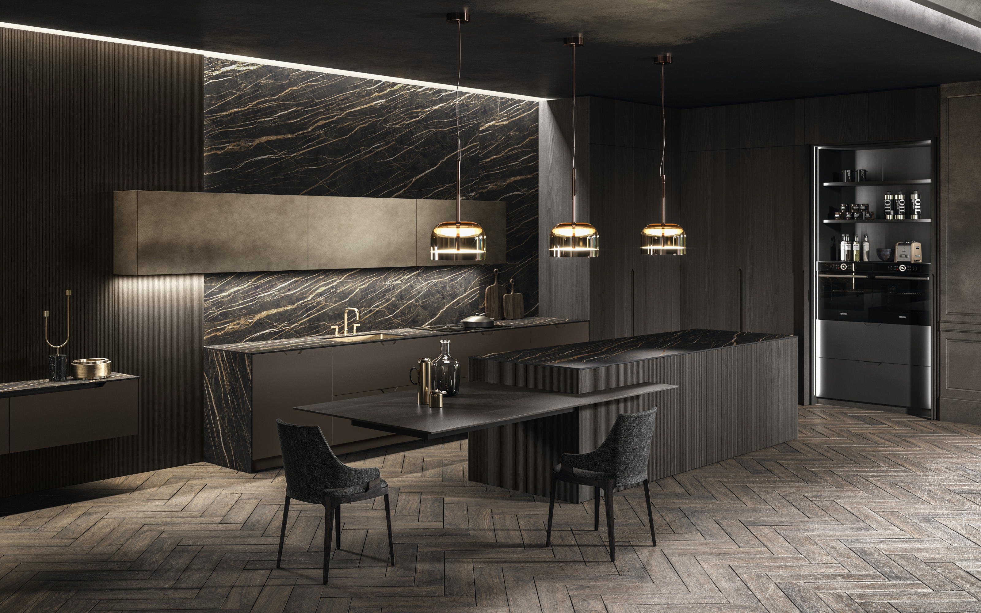 Pure Glam – новая коллекция от Aster Cucine. Множество вариантов хранения кухонных принадлежностей и установки бытовой техники: модульные системы, ящики, ниши. Уникальные материалы и лаконичный дизайн: только линии, формы и геометрия.