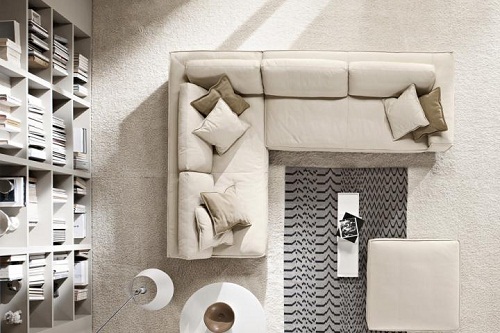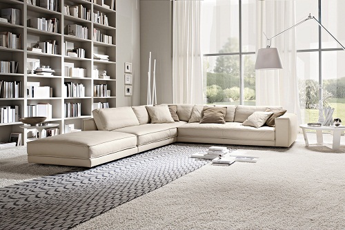 Диван угловой Prianera Yucatan в современном стиле из Италии. Размеры: 325 х 235 х 75 см. Обивка: кожа. Цвет: бежевый. Шезлонг слева.
