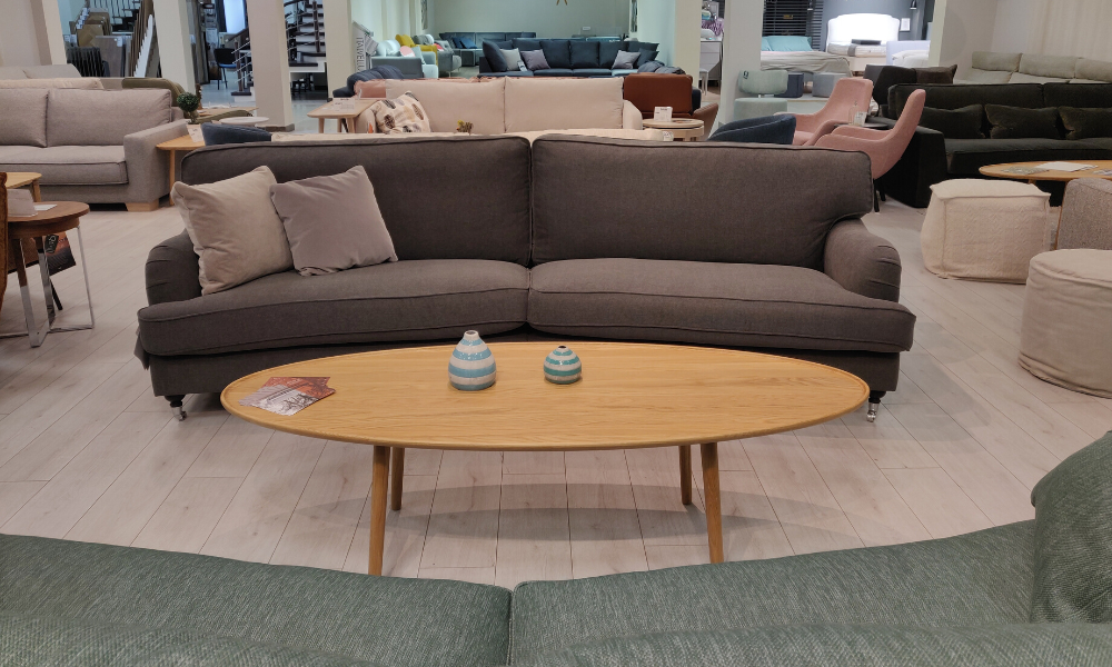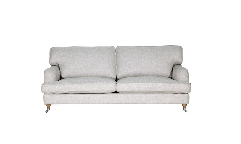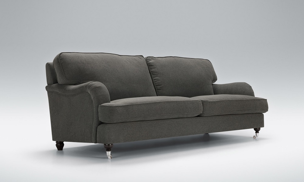 Диван Sits Howard радиусный с пуховым наполнением подушек спинки и сиденья. Линейка включает много конфигураций угловых и прямых диванов, пуфы и кресла, а также разные варианты обивки и отделки. Размеры: 274 x 102 x H 84/44 см.
