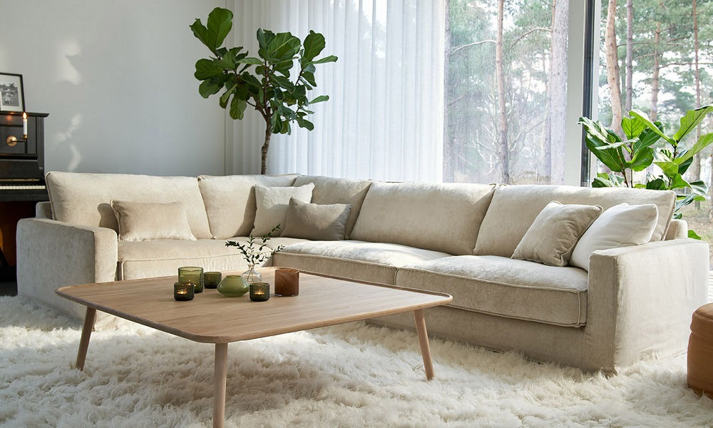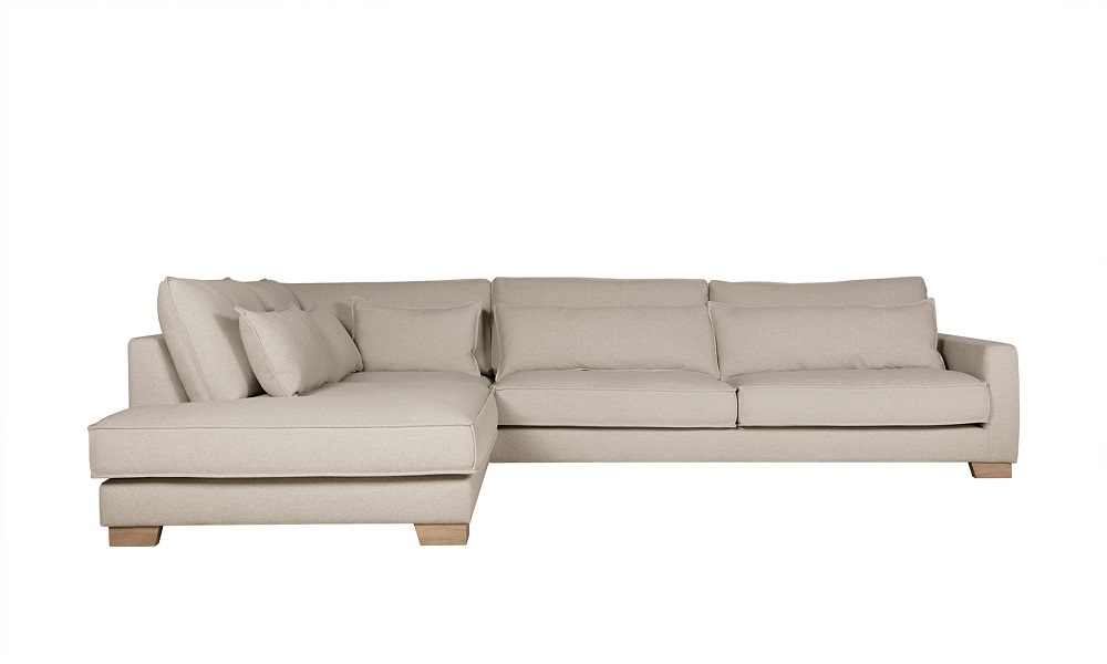 Диван Sits Malte с пуховым наполнением подушек спинки и сиденья. Линейка включает много конфигураций угловых и прямых диванов, пуфы, а также разные варианты обивки, отделки. Возможны варианты со съёмным чехлом. Размеры: 298 x 110 x 85/44 см.