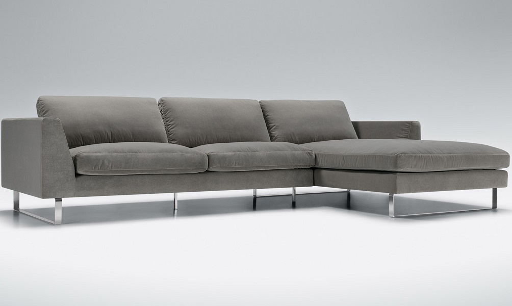 Линейка включает много конфигураций угловых и прямых диванов, пуфы и кресла, а также разные варианты обивки, отделки и наполнения. Размеры: 220 x 98 х (80/43) см.