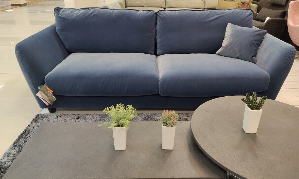 Диван Sits Viktoria с пуховым наполнением подушек спинки и сиденья. Линейка включает много конфигураций угловых и прямых диванов, пуфы и кресла, а также разные варианты обивки, отделки. Чехол съёмный. Размеры: 230 x 103 х (81/43) см.