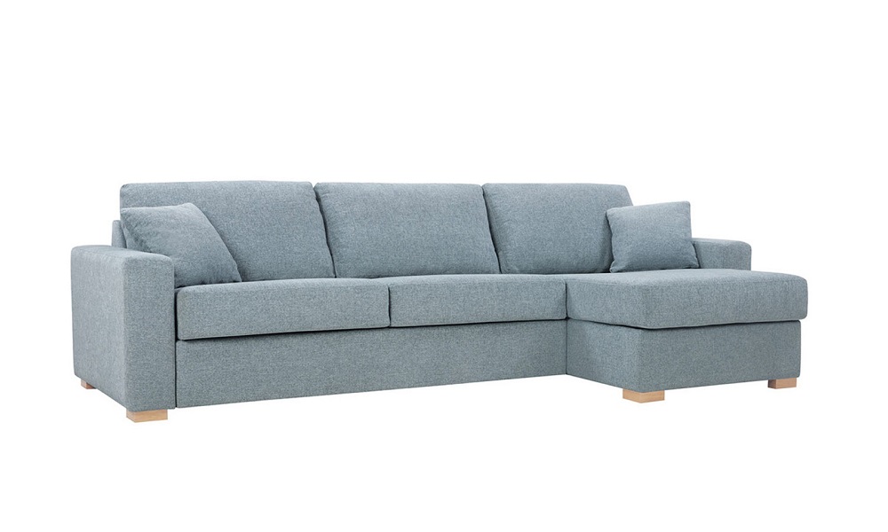 Диван раскладной для ежедневного сна, бельевая ниша. Размеры: 279 x 152 x 100 (88/48) см. Линейка включает много конфигураций угловых и прямых диванов, кресло, а также разные варианты обивки и отделки.