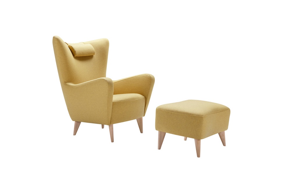 Кресло Sits Elsa. К заказу доступен также пуф. Возможны варианты обивок и отделок. Размер: 83 x 91 x 103H см.