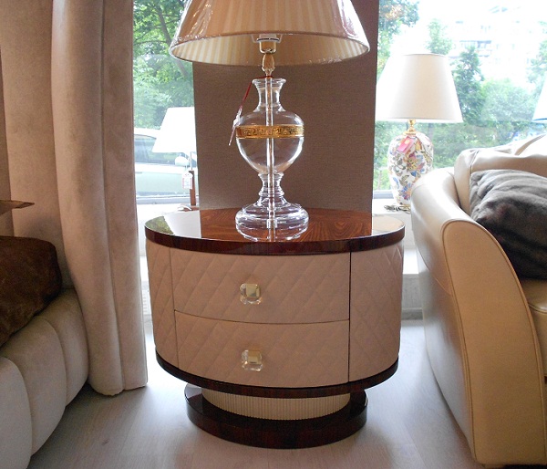 Тумбочка Minotti Collezioni Pianosa в классичсеком стиле из Италии. Овальная тумбочка на 2 ящика, обитыми кожей с деревянной столешницей и ножкой. Размеры: 70 x 45 x 58.5 см