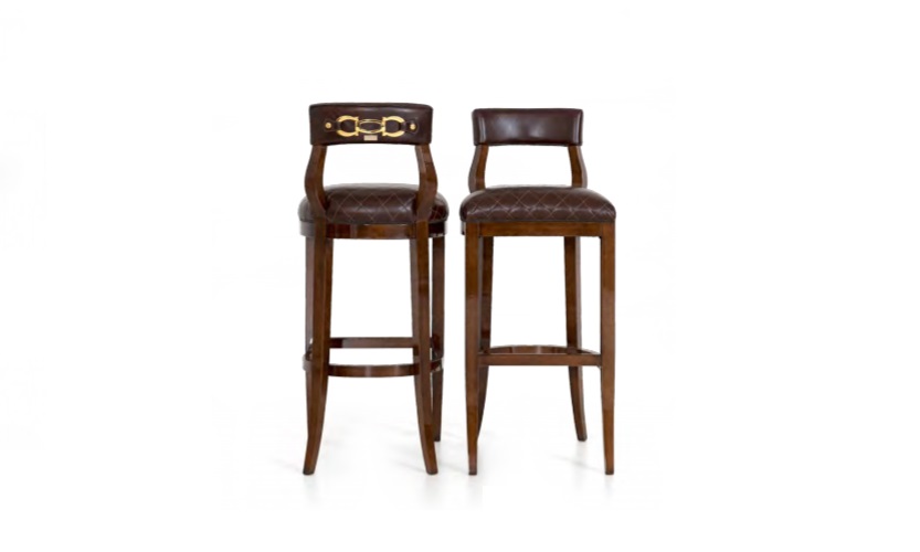 Барный стул Formitalia Plaza в классическом стиле из Италии. Размеры: 44 x 66 x h115 см. Материалы: шпонированные ножки, кожаное сидение в отделке цвета шоколад.