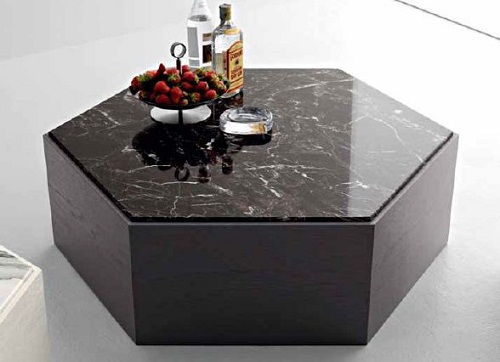 Столик Flai 13118.NK.EMP из Италии. Шестиугольный стол со столешницей из чёрного мрамора.